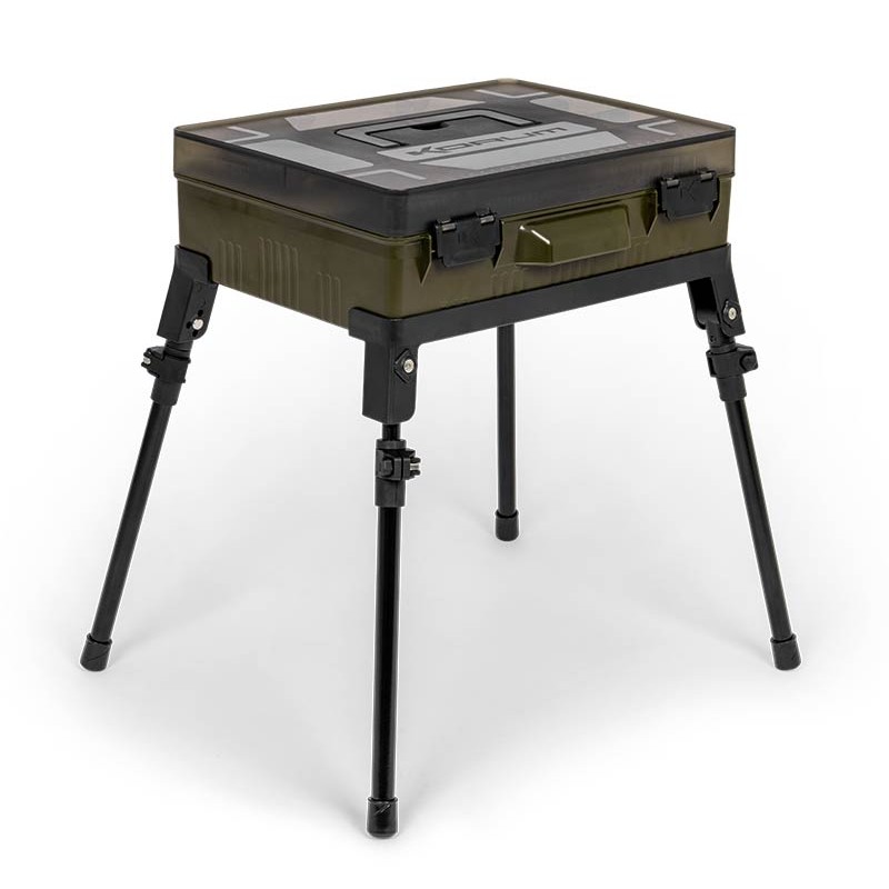 a complete, self-contained fishing station ! your ideal companion by the water, allowing you to store all your gear, your accessories and your rigs in one and the same very sturdy tackle box. we have carefully sized the blox so that it can contain the essential tackle items, such as spools of line, packets of hooks and accessories. the baiting needles, the dehooker and the scissors fit perfectly into their dedicated slots, while the main box can be adjusted using dividers to meet your needs. the lid also houses two shallow rig blox, which protect all leaders from the elements. the telescopic legs allow you to have the unit within reach when you fish from a chair, or to stay well organised when you fish in a shelter. it is equipped with a durable strap, a side handle, secure fastenings and a sealing gasket. a measuring ruler is also included for making rigs.