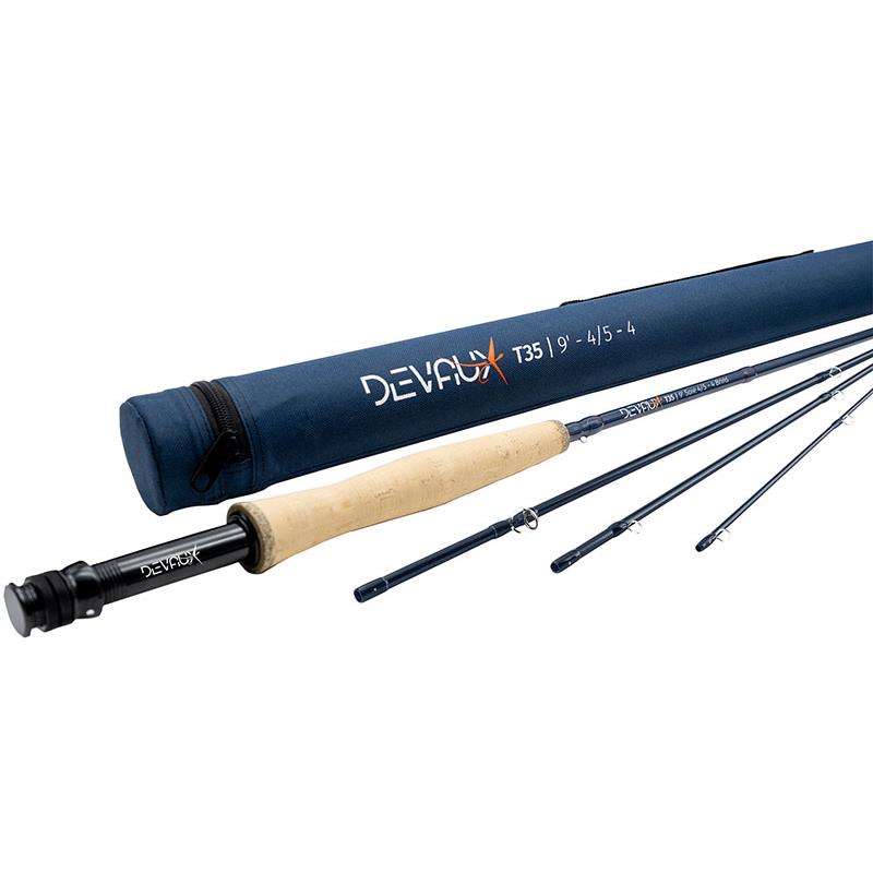 The T35 blank is blue-grey in color with a black aluminum reel seat. Fitted with a SIC stripping ring followed by single-foot guides (hard chrome). The cork handle is cigar- or tulip-shaped depending on the models, with two end sections in reconstituted cork to increase its durability.