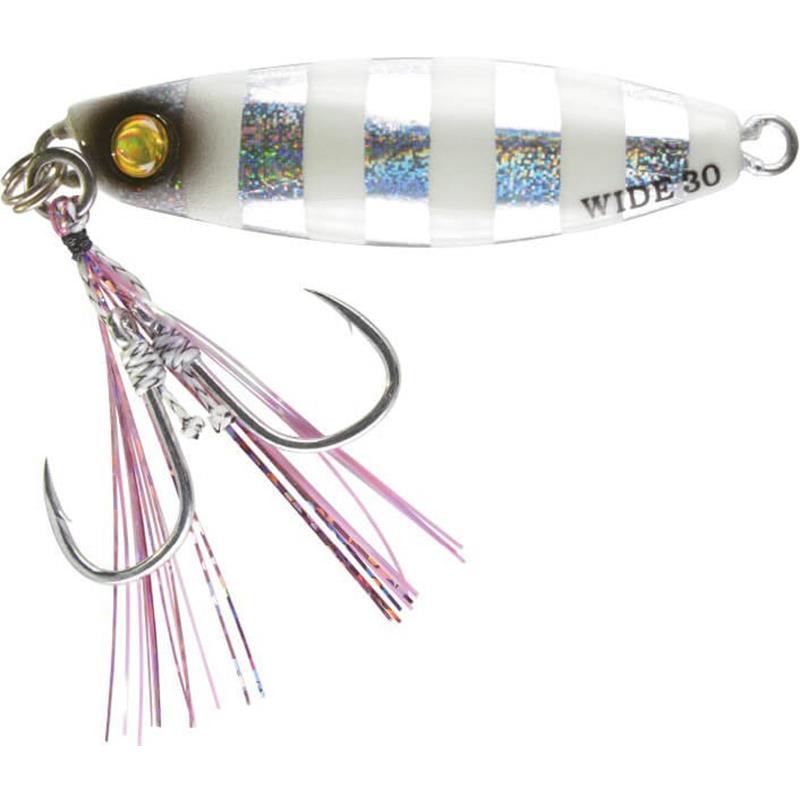 The Jackeye Shot Slow Wide is a casting jig that adopts the profile of a slow jig. It therefore features two asymmetrical sides, one face being flat while the other is convex. With a central weighting, it sinks flat and flutters strongly as it rolls from one side to the other. This profile also allows it to perform very large-amplitude jerks. Ultra dense, it casts to impressive distances but thanks to its ultra-versatile action, it can be worked quite slowly. Ideal for cast-and-retrieve fishing from a boat or from the shore. The Jackeye Shot Slow Wide is also excellent for ultra-light vertical fishing to precisely probe each water layer. It comes factory-equipped with a short mini assist hook at the head and another at the tail to limit hookups. The assist hook is fitted with holographic tinsel strands.