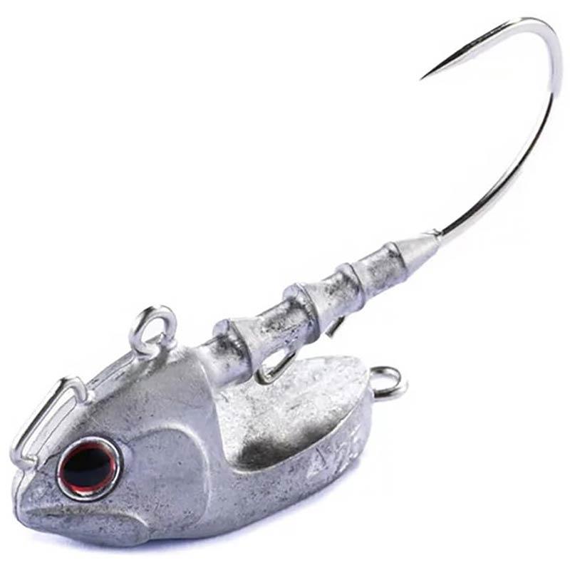 an ultra-technical jighead specially designed for gliding retrieves. its low center of gravity and very flat base give the lure a sliding fall that is much more natural and slower than a classic vertical descent. its very clever « worm keeper » has an eyelet allowing the insertion of a side stopper (toothpick or other) to completely lock the lure on the hook without needing to glue it. the glidy is equipped with a standard eyelet for vertical fishing, a second larger one for linear retrieves, as well as a rear eyelet intended to add an assist hook or an additional blade. it can be used in freshwater as well as at sea thanks to its Gamakatsu stainless hook. an ideal jighead for the dolive shad, the dolive stick, vertical fishing, linear retrieves or bump-and-drag techniques.