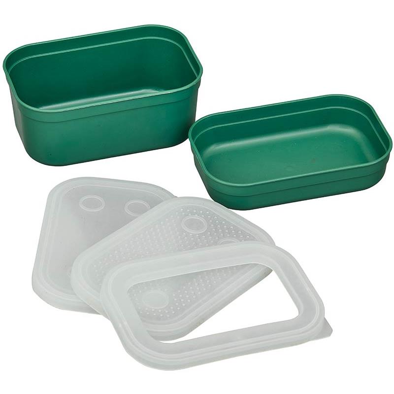 set of 2 boxes and 3 lids, to allow you to easily carry any type of bait. very compact, they will easily find a place on your bait tray !