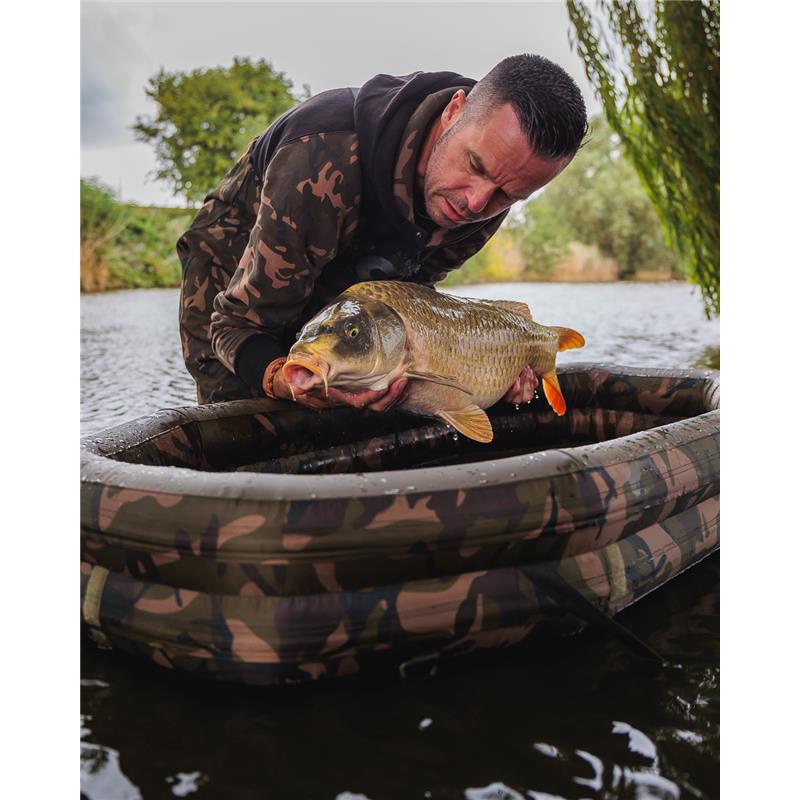 • Oval-shaped inflatable landing mat designed for ultimate fish protection with an exterior in Fox 210D camo polyester.