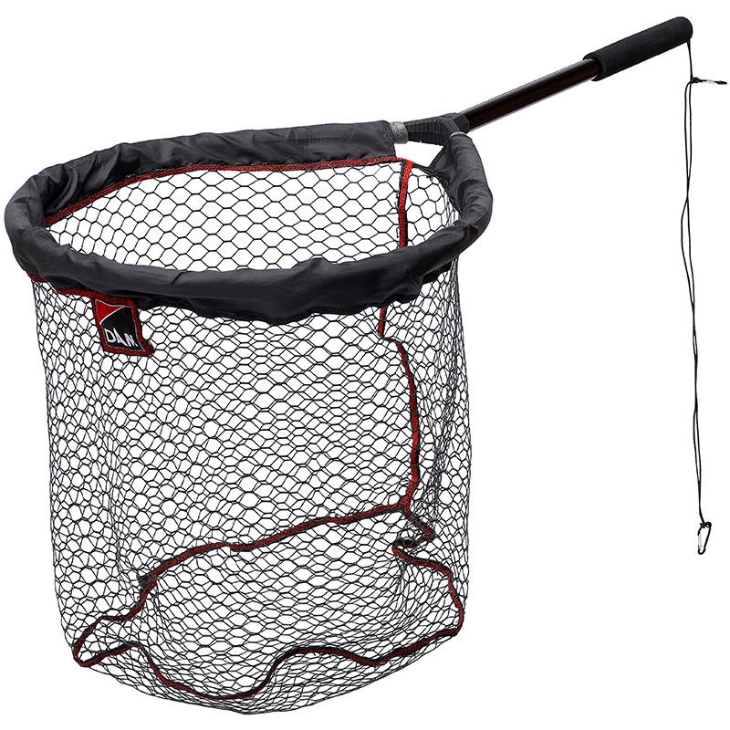 the dam floating landing nets have won over anglers thanks to their strength and efficiency, the xl version meets the new expectations of enthusiasts. the landing net measuring 110 cm makes it easier to land fish when you fish from a float tube and need a few extra centimetres to bring the fish of your life ashore. it is also very useful for unhooking the fish directly in the net without risking your net sinking to the bottom. the rubber mesh reduces the risk of hooks snagging and allows the net to dry quickly without unpleasant odours.