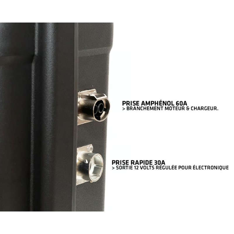 • protection by integrated bms 60a, breaker 60a, stainless screws.