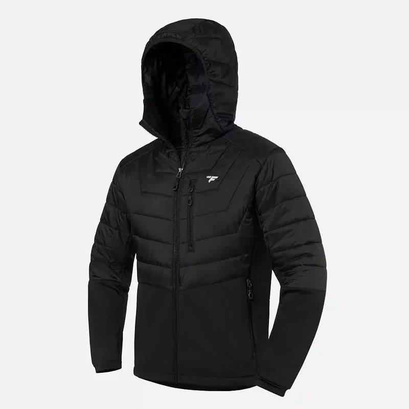 the powerstretch stretch panels improve ventilation and freedom of movement, while the elastic cuffs and adjustable hem ensure a perfect fit. the insulated hood with a stand-up collar offers wind protection and adjustable comfort. equipped with three exterior zipped pockets and an internal chest pocket, this jacket combines functionality, comfort and packability for all your adventures.