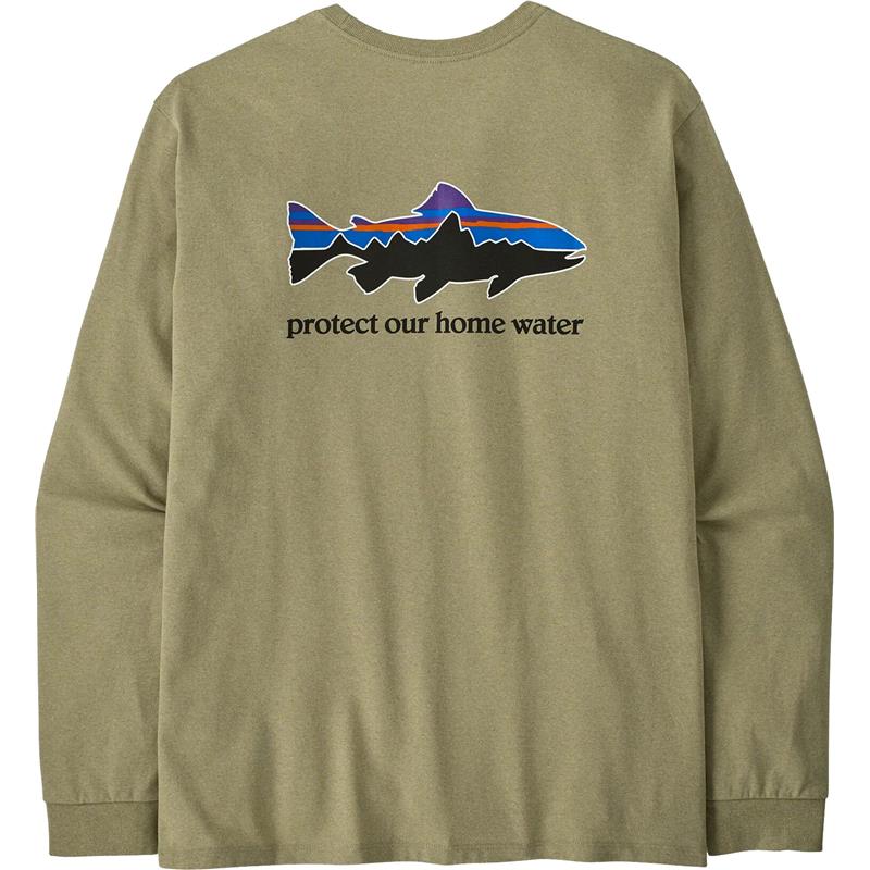 Men's Long-Sleeve T-Shirt Patagonia Men's Long-Sleeved Home Water Trout Responsibili-Tee - Gumtree Green