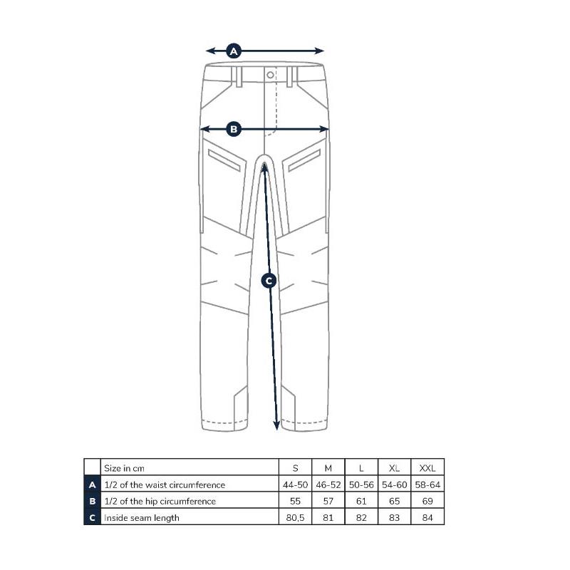 Outdoor trousers for men in an impregnated, water-repellent and wind-resistant material. They allow you to stay dry longer, even in bad weather. The anatomical shape of the knees allows free movement, while the option to detach the lower part of the pant legs makes it easier to put on shoes. Two of the four pockets are equipped with zippers. The belt hole allows you to adjust the waist to the desired size. The trousers have a total of four pockets, two at the front and two at the back. The buttons are decorated with the inscription Adventer & fishing. A spare button is included.