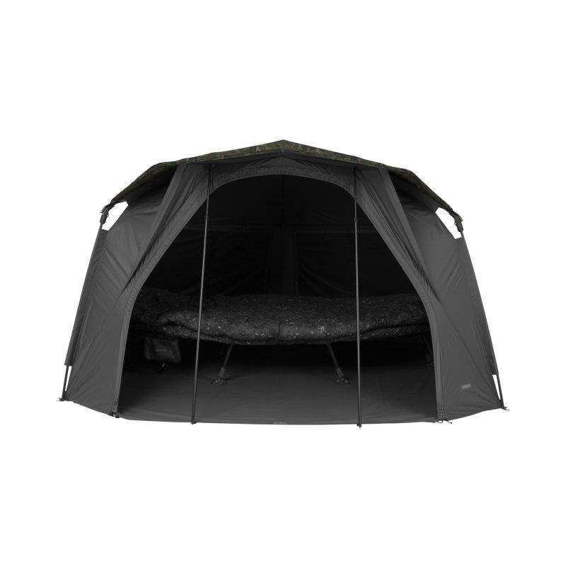 The addition of a tempest rs brolly skull cap camo to your tempest rs shelter significantly improves its performance. It adds extra length to the canopy, providing better coverage in and around the door area. This bivvy accessory also creates shade, significantly cooling your shelter during the hottest months. The double layer improves insulation, greatly reducing the risk of condensation. Made from enhanced aquatexx™ camo, this multi-layer fabric offers excellent waterproofing, breathability and a black pigment. The RS version features an improved gutter system and two magnetic rod straps.