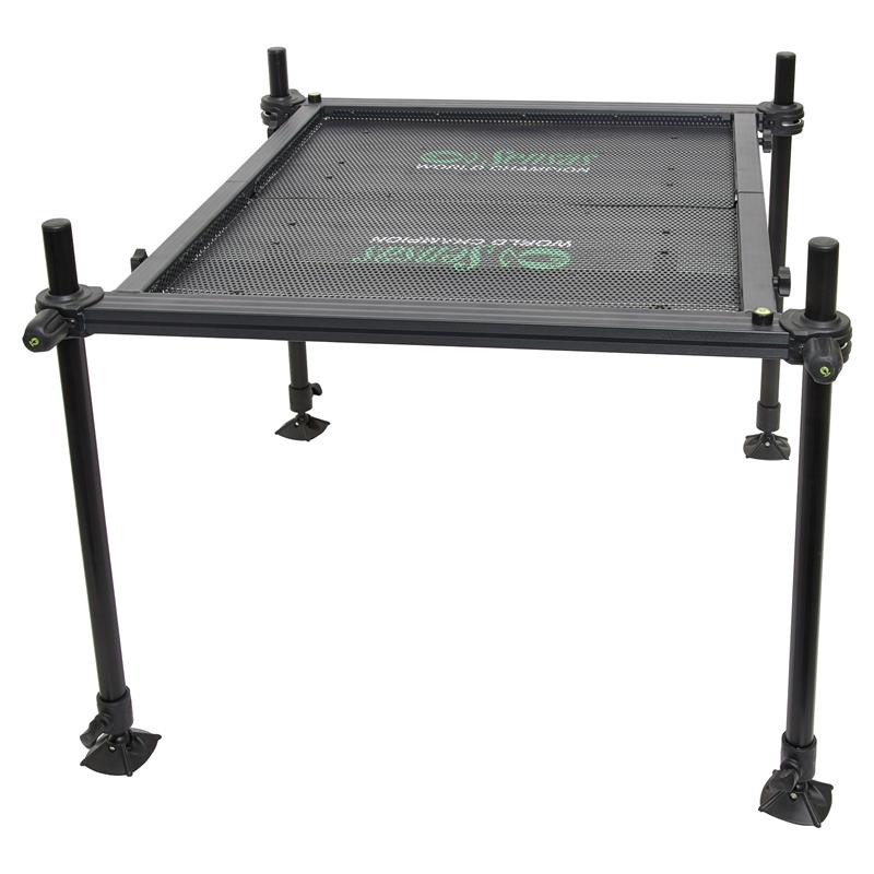 This new platform brings together all the qualities needed to set up in the most extreme conditions: sturdy, stable and compact. This detachable pontoon in 2 parts will fit into its transport bag of 50x99x14cm; its 4 Jumbo telescopic legs 80/140cm and its World Champion jaws will allow a secure installation in all situations.