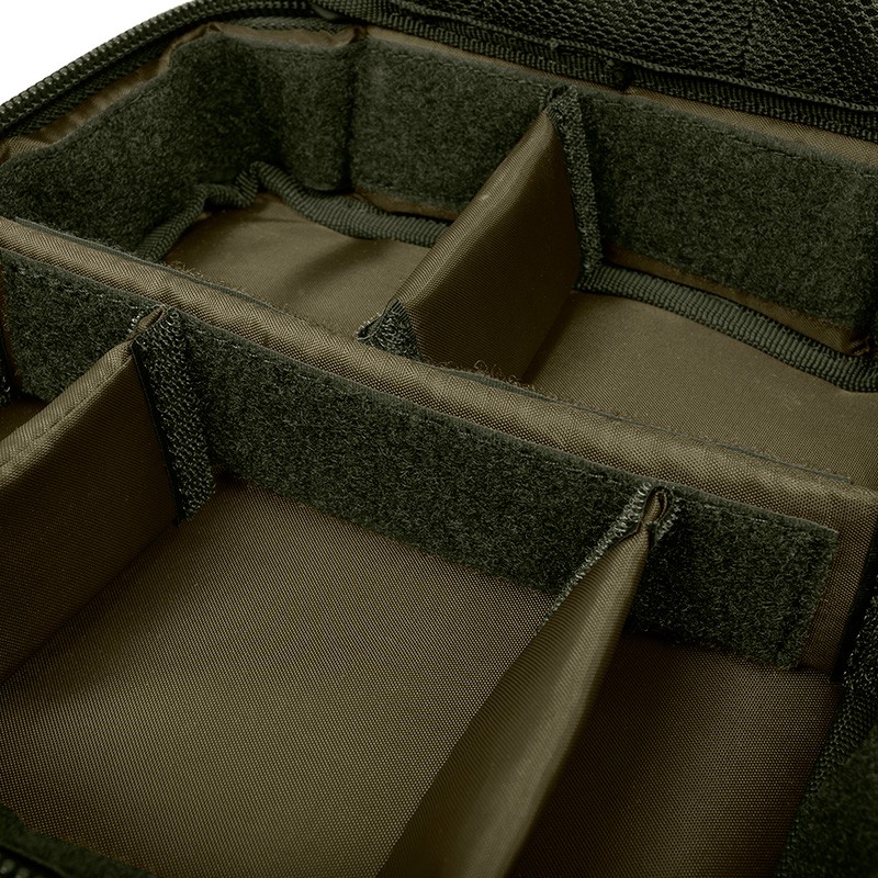 The NXG Compact Tackle Bag is equipped with a customizable divider system, as well as a wide range of pouches suited to fishing items of different sizes.