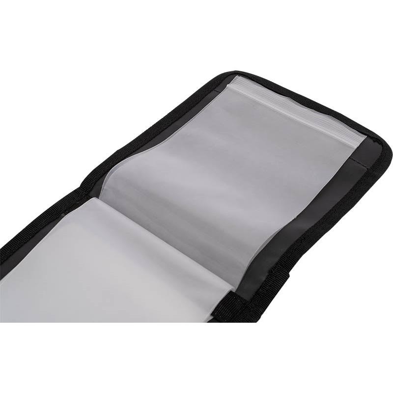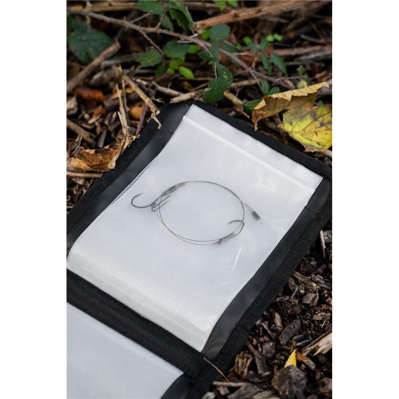 This model includes 10 resealable pouches to store sleeves, leaders and rigs. Simple velcro fastening