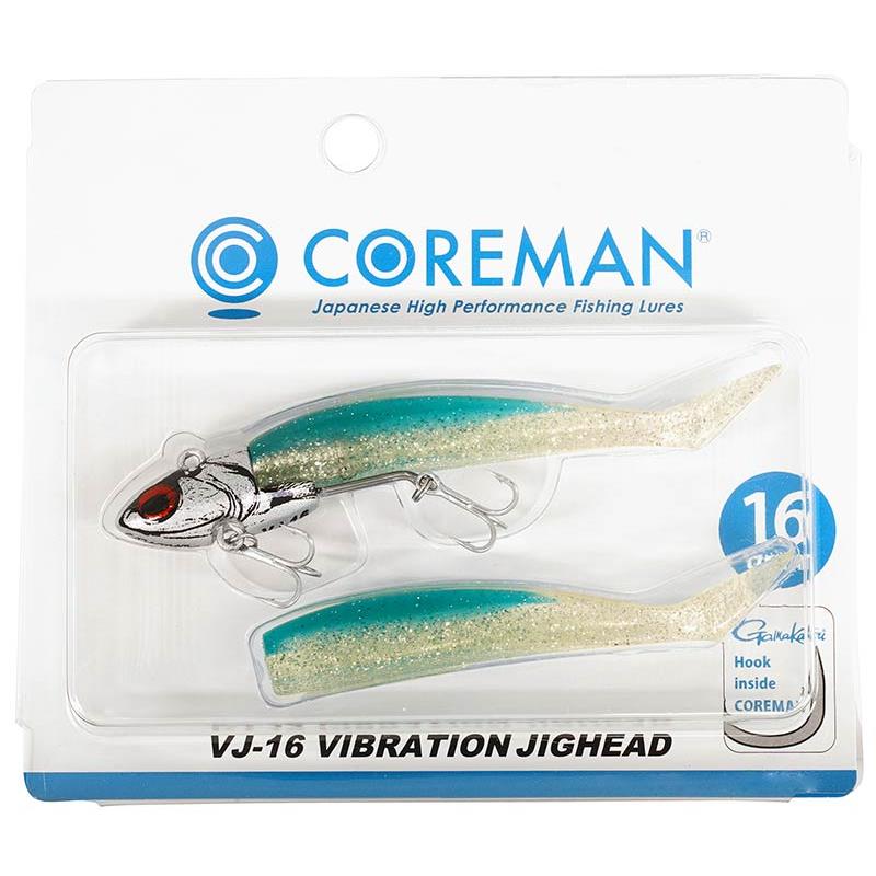 The Coreman VJ series consists of high-performance lures specially designed for sea bass and other coastal predators during daytime fishing. The VJ-16 and VJ-22 models, combined with the Coreman Alkali Shad, stand out for strong vibrations, long casting distance and a particularly effective presentation. Weighing 16 g and equipped with the Alkali Shad 75 for a total length of 90 mm, the VJ-16 produces an extremely attractive vibration that manages to convince even experienced and wary fish. Fitted with a Gamakatsu Treble13 hook (#10) and a Coreman Original split ring (#1), it offers optimal action and excellent hooking quality. Its head design ensures precise vibration, exceptional casting distance and quick activation right off the bottom – ideal for snaggy areas. The integrated “Chidori Action” imitates the erratic behavior of an injured baitfish and is triggered simply by retrieving the lure.