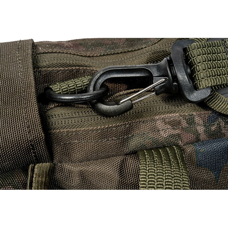 The base pocket and compression straps allow attaching externally: landing nets, banksticks or even compact umbrellas.
