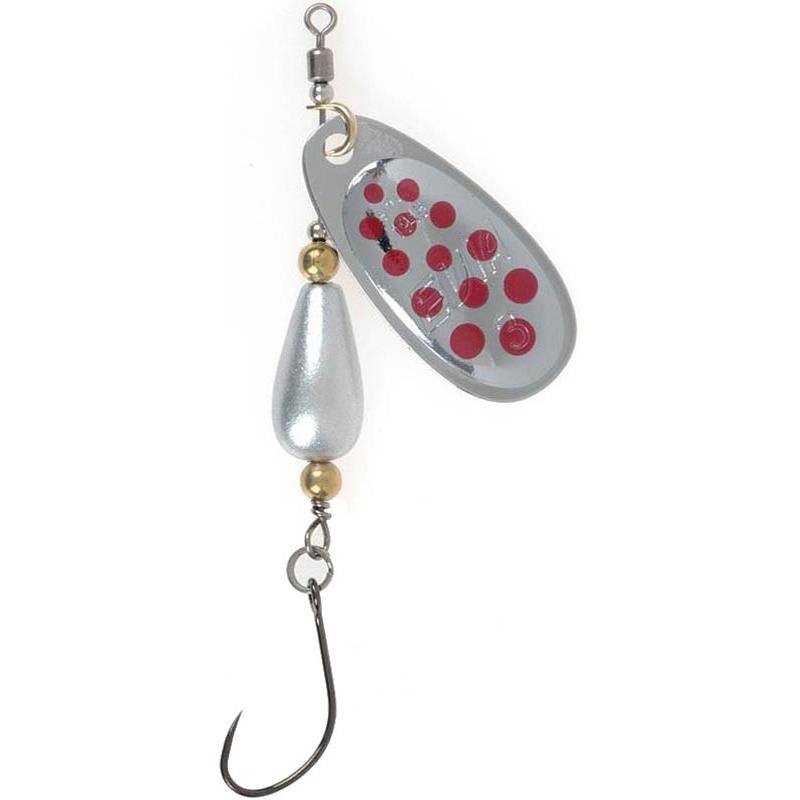 Spinning Spoon Evia Dotty Max Mod 11M Single Hook Without Loop - Silver Red Dots