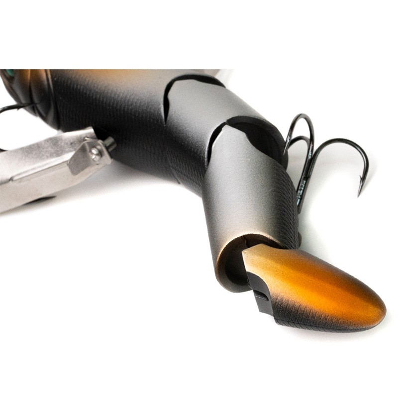 The Touda is a substantial crawling lure, endowed with a flexible action thanks to its four-link body. In the depths of overhangs and along shorelines, it can be used to attract fish with a rotating head movement that reduces the distance traveled, then switch to a crawling action.