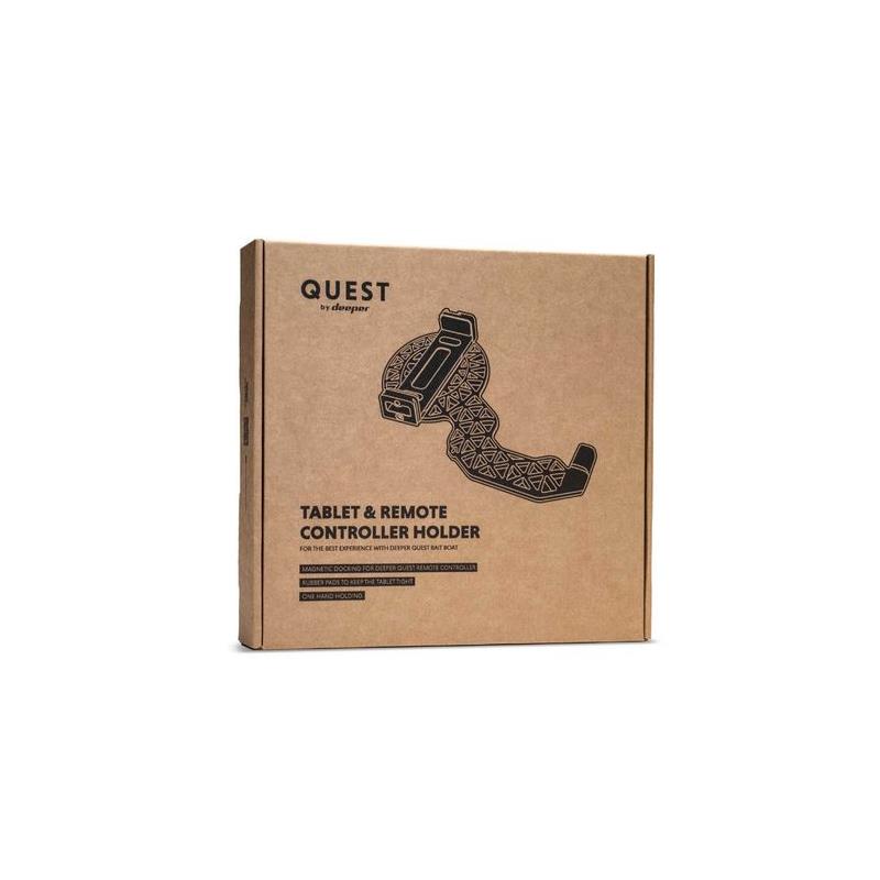 designed specifically for anglers who prefer to use a larger screen, the tablet holder for the quest bait boat remote control allows you to view the fish deeper app on your tablet while controlling your deeper quest bait boat.