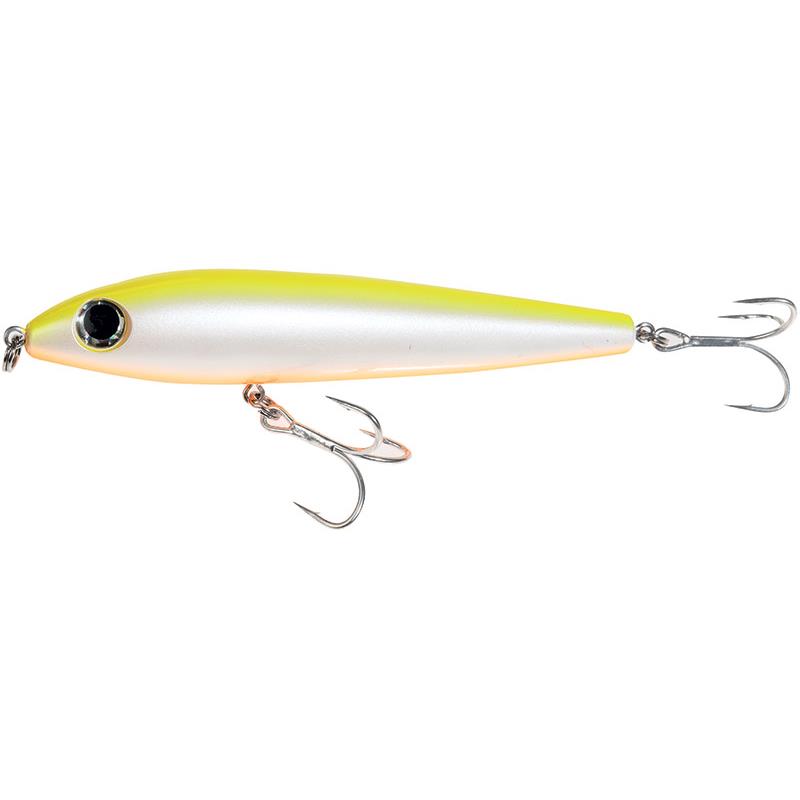 Fast-action walker in walking and sliding movements. Powerful casting, thanks to its design and spherical internal counterweights. It floats on the water in a nearly vertical position and responds quickly to the angler's jerking with a short, tight walk.