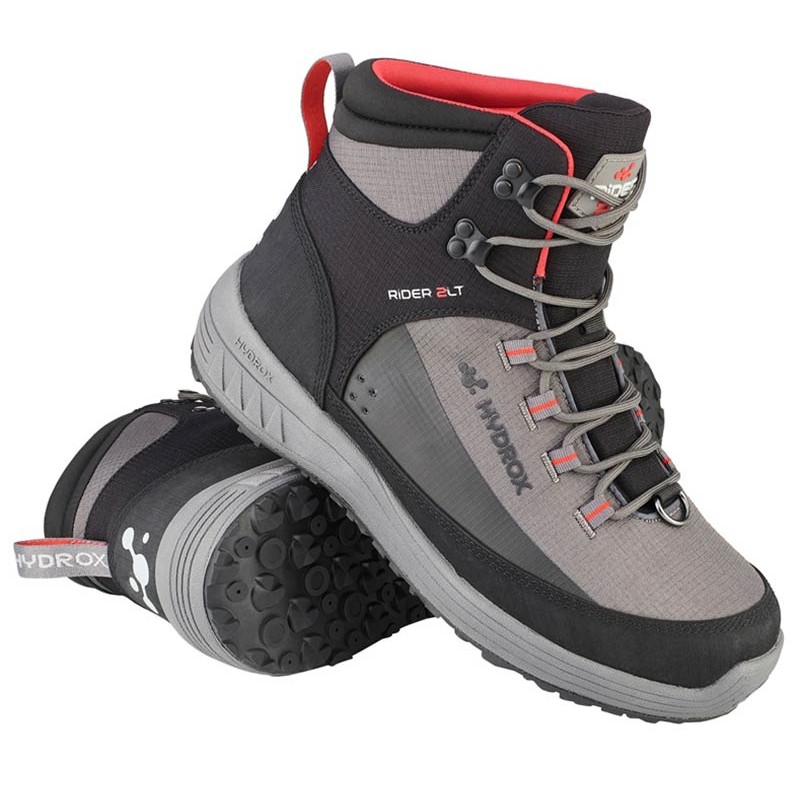 the second generation of hydrox rider lt wading boots is ultra-light thanks to a 100% ripstop construction. designed for demanding anglers, they combine durability and comfort. equipped with a full rubber reinforcement with triple stitching for exceptional toughness, they feature a custom hydrox midsole for optimal support. the rubber sole with mounts for studs ensures perfect grip on all terrains, even the slipperiest.