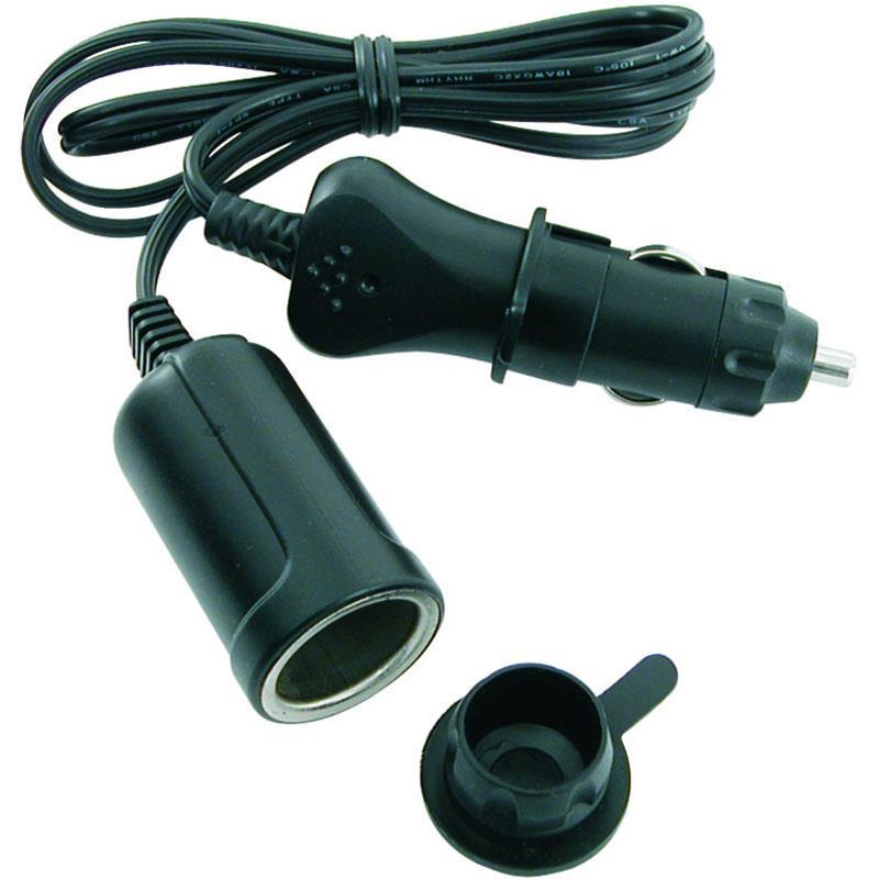 Alargador bipolar tipo “encendedores”. Tomada hembra con calamón de impermeabilidad. Ficha masculino protegida por fusible 5 A proporcionado.