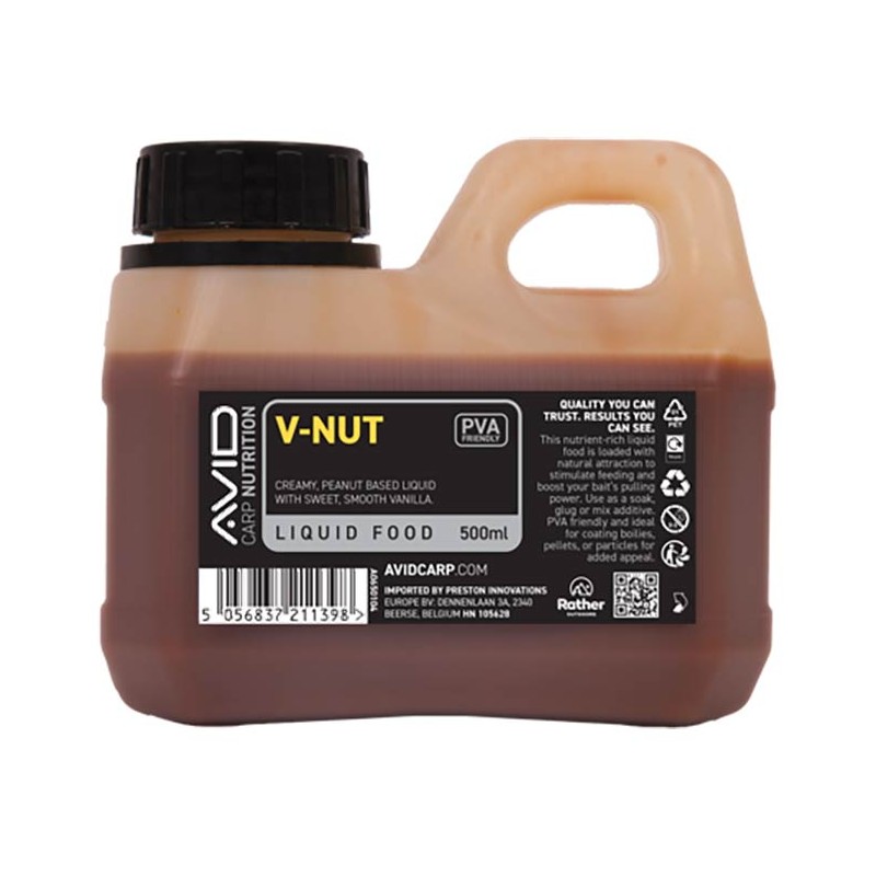 • concebido para mejorar la eficacia de las boilies v-nut premium, este líquido cremoso de base alimentaria combina un sabor a vainilla ultra-atractivo con una base rica en extracto de cacahuete.