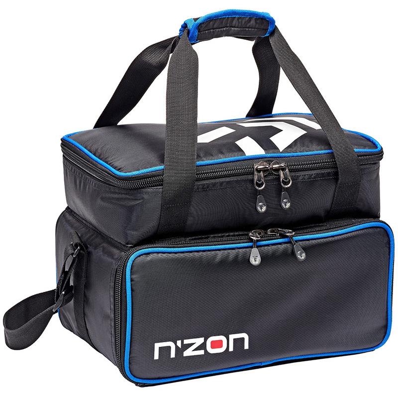 Esta bolsa N'Zon consiste en dos partes separables. La parte superior tiene un revestimiento interno de aluminio para mantener tus cebos frescos. La parte inferior contiene cajas para guardar tus accesorios y jaulas feeder. • 3 Cajas