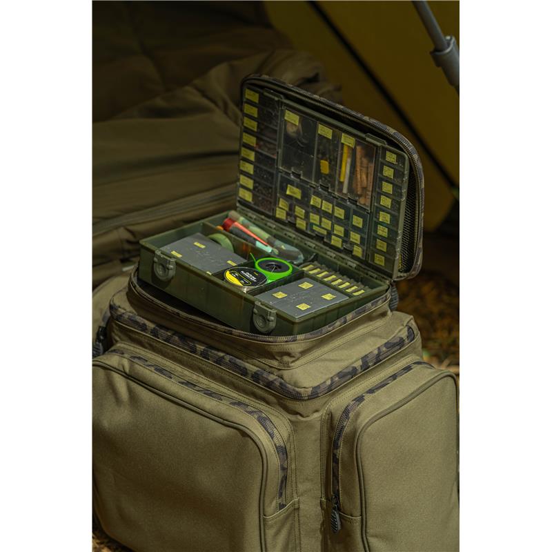 • gran compartimento central para los accesorios más voluminosos, la ropa y los cebos.