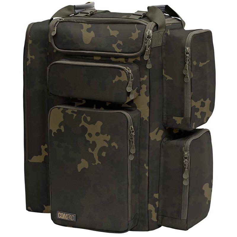 la mochila compac dark kamo ha sido diseñada para los pescadores que siguen llevando su material a la espalda, en lugar de utilizar una carretilla, o que simplemente prefieren este estilo de mochila a un carryall, y podrá contener mucho material a la vez que resulta cómoda de llevar. esta mochila de 60 litros ofrece mucho espacio de almacenamiento interno, y le permite mantener todo su material bien organizado gracias a cuatro bolsillos laterales exteriores que tienen el tamaño perfecto para los compac 100, 110 y 125 eva, además de un bolsillo delantero que ofrece un acceso rápido a todo su material esencial, ya que la tackle box korda se adapta perfectamente. queda mucho espacio en el compartimento principal para el resto de sus equipos, así como un bolsillo interior con cremallera, práctico para mantener objetos como su cartera y las llaves del coche seguros cuando está al borde del agua.