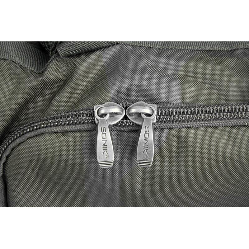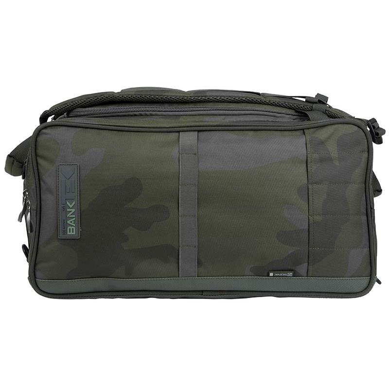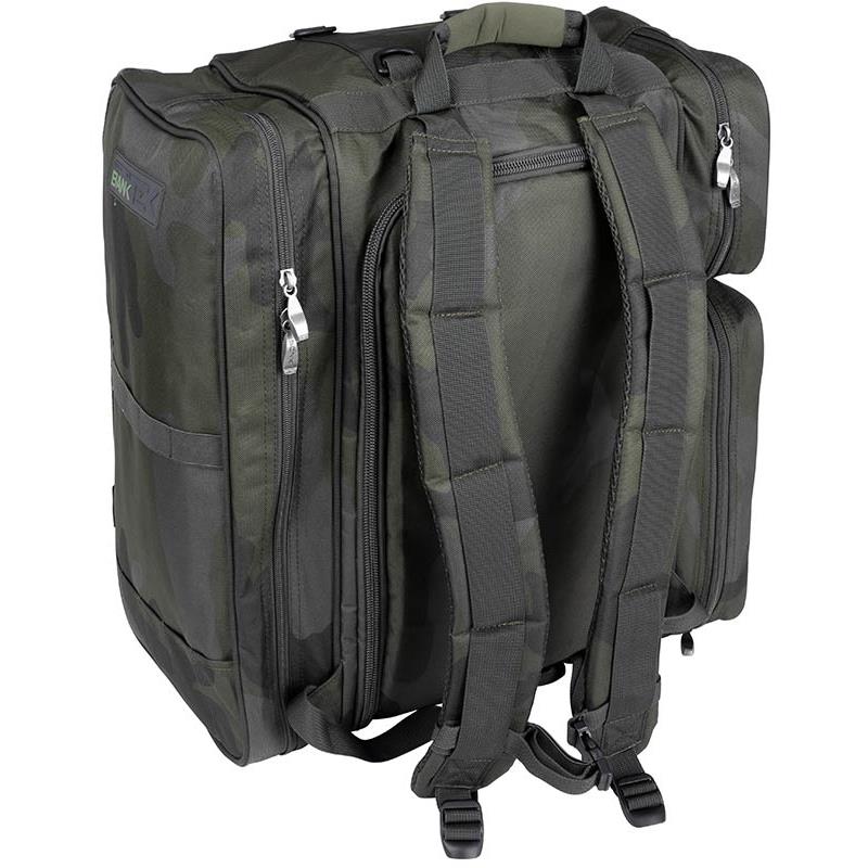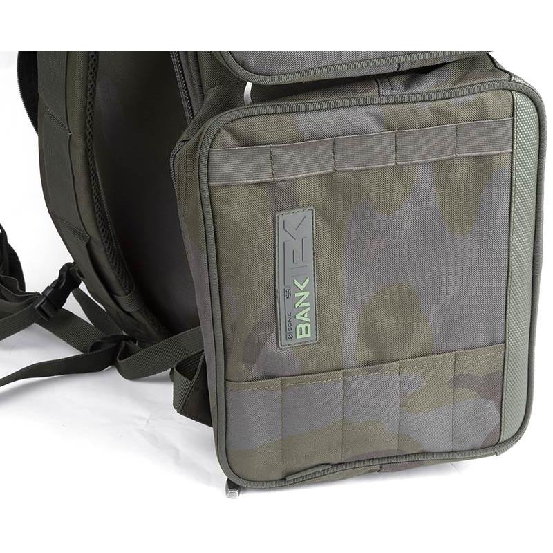 El equipaje multifuncional perfecto; una mochila, un bolso de mano o un bolso de carretilla todo en uno. La mochila Bank-Tek está fabricada a partir de nuestro resistente pero sutil material de camuflaje Bank-Tek. Está completamente forrada, acolchada y reforzada para ofrecer un diseño rígido para un fácil acceso. Todos los bolsillos han sido maximizados para reducir el desperdicio de espacio y están dimensionados para aceptar fácilmente las bolsas de accesorios modulares Sonik. Las asas de agarre rápido y el diseño de bajo perfil lo hacen perfecto para almacenar bajo la cama. Gracias a los puntos de fijación de los anillos en D superiores e inferiores, es fácil fijar accesorios adicionales como una silla y una alfombra de desenganche. Los picos también pueden ser almacenados en cada lado para una rápida instalación. Todas las zonas de desgaste clave han sido reforzadas para una durabilidad máxima.