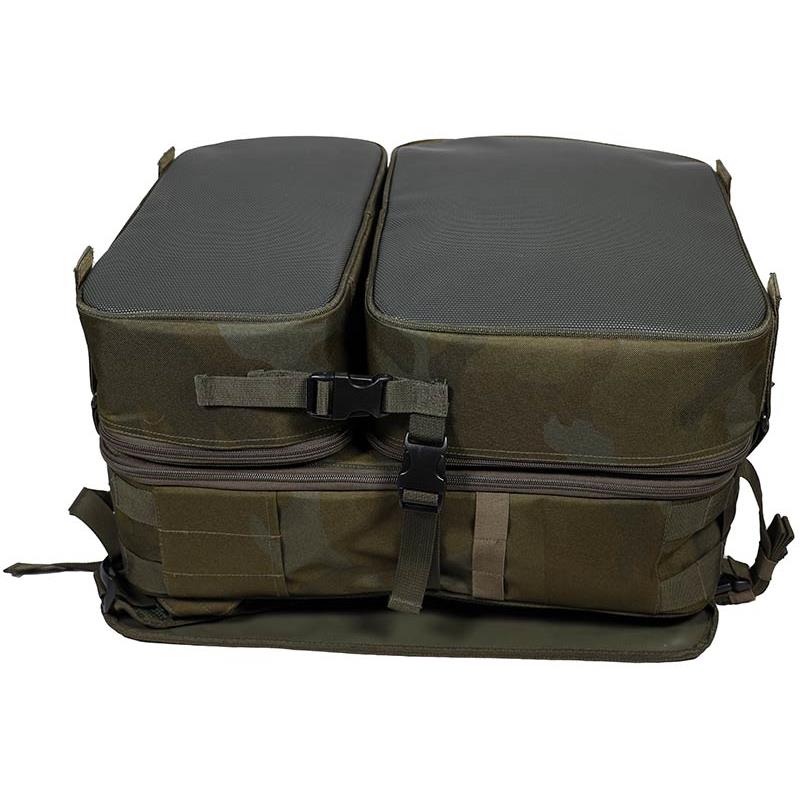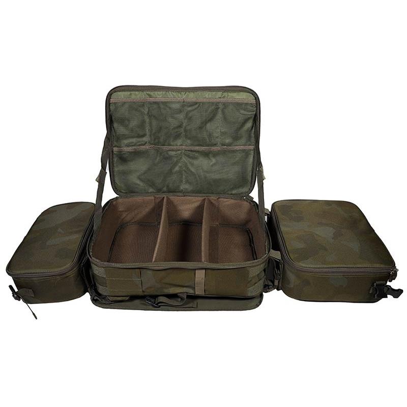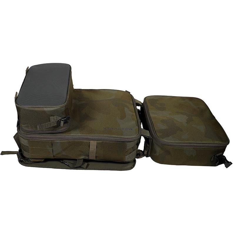 La mochila Xtractor es la solución perfecta para el pescador móvil. Su diseño modular plegable permite un enfoque preciso de almacenamiento y un fácil acceso a todo tu equipo. Diseñada para contener pequeñas bolsas de accesorios y artículos esenciales de equipo terminal, un kit más grande también puede ser conectado en los laterales. Perfecto para las sesiones de acecho o para las sesiones cortas donde la movilidad es la clave.