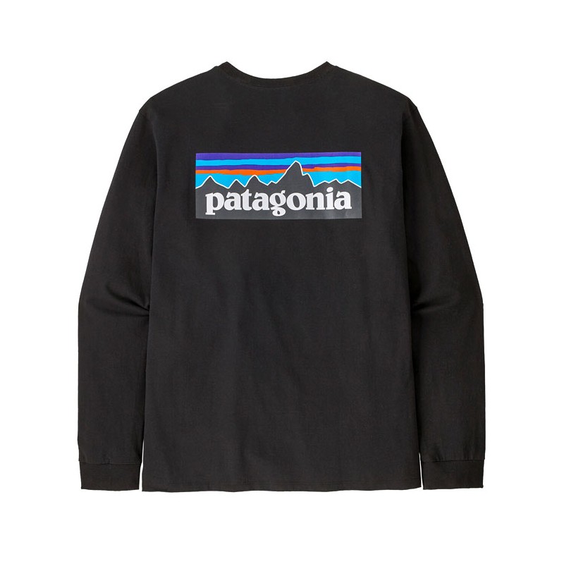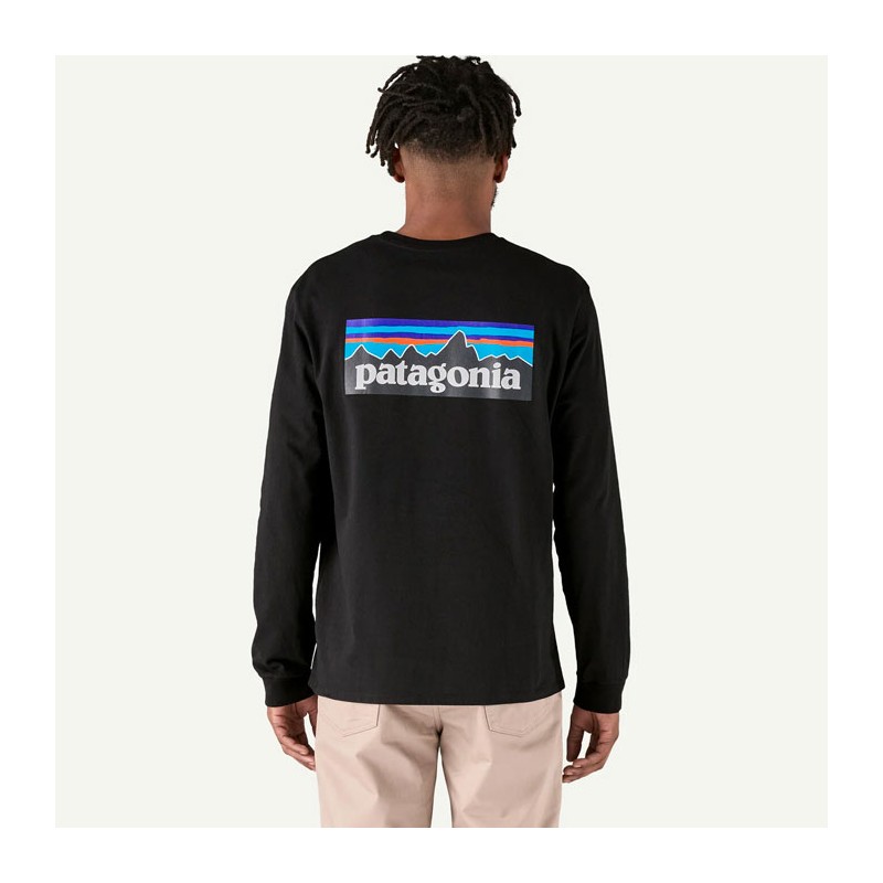 Camiseta De Manga Larga Hombre - Black Patagonia L/S P-6 Logo Responsibili-Tee - Black