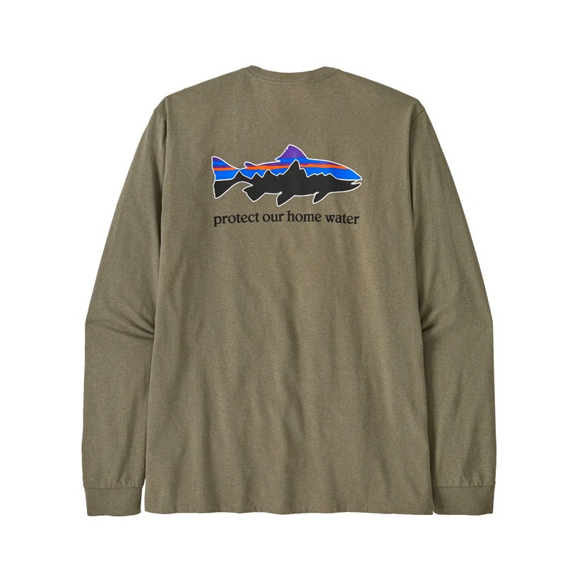 Camiseta De Manga Larga Para Hombre Patagonia L/S Home Water Trout Responsibili-Tee - River Rock Verde