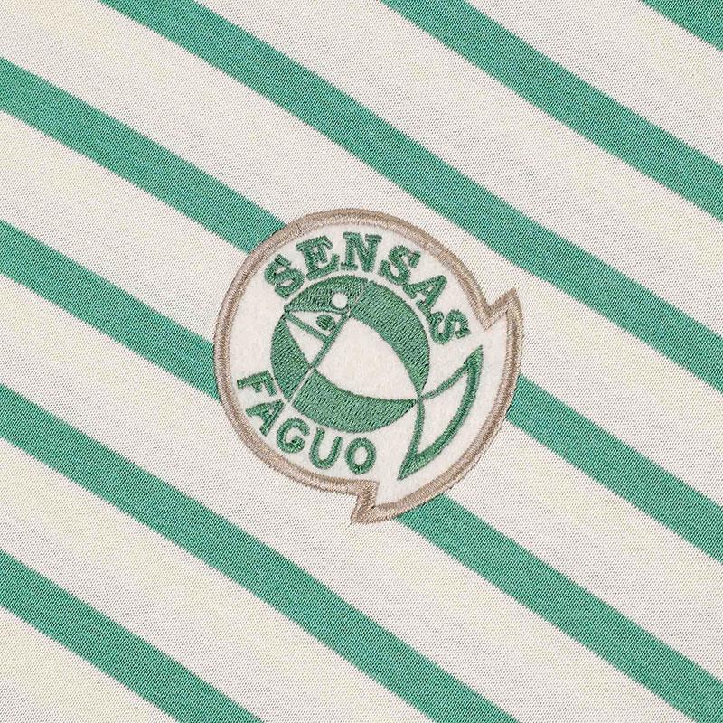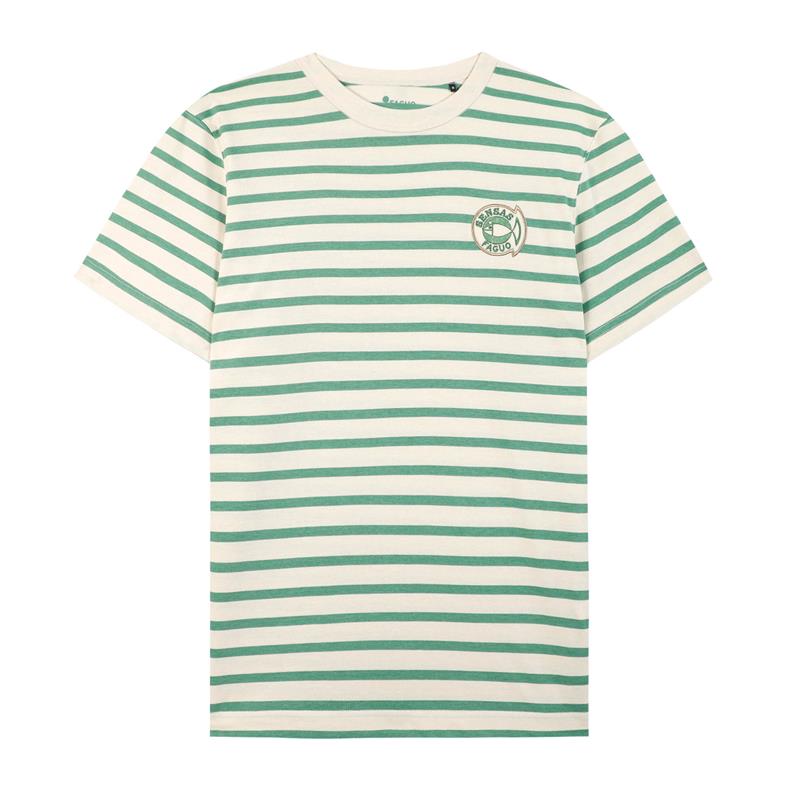 Características: • Material de jersey en algodón y poliamida InResT proveniente de redes de pesca • Rayas bicolores estilo marino • Insignia bordada que representa la colaboración Faguo X Sensas