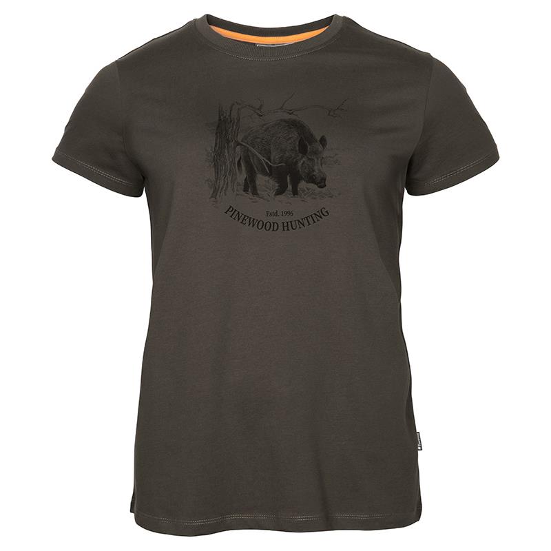 Una camiseta elegante y cómoda de algodón 100% orgánico con un estampado de jabalí. Esta camiseta para mujeres presenta un estampado de jabalí impactante y está hecha de 100% algodón orgánico. Tiene un corte femenino y un cuello redondo. Es la opción cómoda y elegante para la cazadora.
