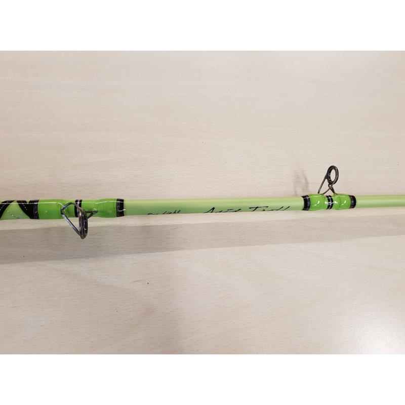 Cañas de curricán de carbono de alto módulo, potentes y ligeras. Las anillas montadas con el sistema « Acid » garantizan un trabajo perfecto del blank durante los combates.