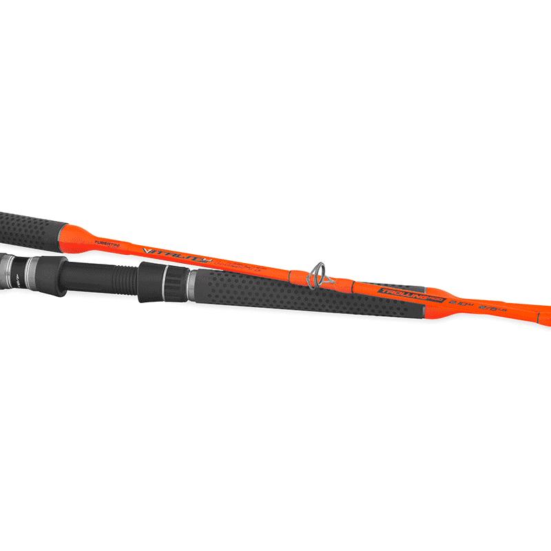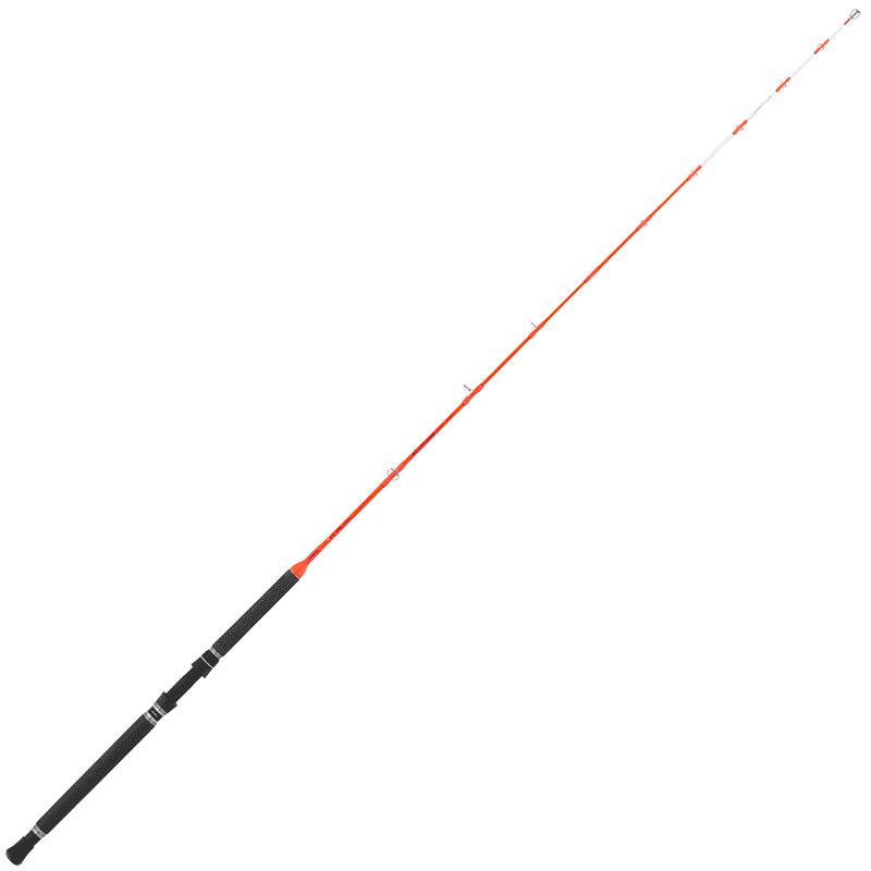 Cañas monobloque ultrafinas, sensibles y reactivas, diseñadas para la práctica de la pesca al curricán costera ligera. Están equipadas con anillas SiC de doble puente de excelente calidad con armazón en titanio recubierto Acid\", porta-carrete de rosca en policarbonato y cardán de aluminio. La empuñadura es de EVA gris y está equipada con un grabado particular que favorece un agarre seguro durante las fases de combate.\"