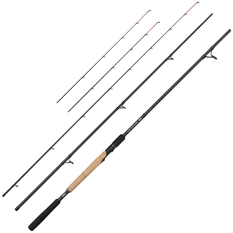 su acabado de alta gama incluye anillas lts ligeras y anti-enredos en zirconio, un mango en eva de alta densidad y un porta-carrete vss integrado en la sección del mango intermedio en corcho ergonómico (clase a). si practicas la pesca al feeder y buscas una caña que ofrezca una buena relación calidad/precio dentro de su categoría, ¡no busques más, la tienes delante de ti!
