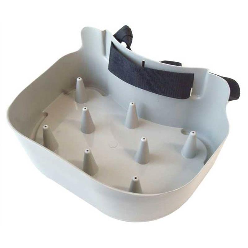 Cesta de lanzamiento de plástico rígido. El fondo está cubierto de puntas para que la seda no se enrede durante el lanzamiento.