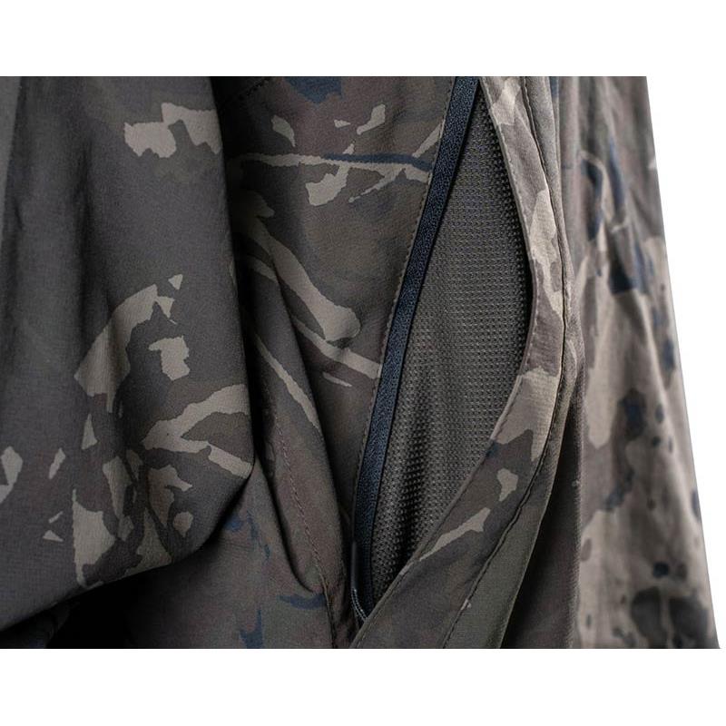 Su polivalencia radica en un bolsillo trasero con cremallera y forro de malla, que se puede abrir para favorecer la circulación del aire y evitar la acumulación de humedad durante actividades intensas. Otras características incluyen un bolsillo impermeable en la manga y un gran bolsillo canguro con cremallera, perfecto para transportar una bolsa de boilies, accesorios TT o pequeños estuches.
