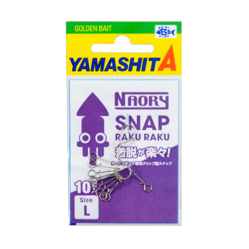 La Naory Snap RakuRaku es una grapa cuya forma y utilización optimizan el tiempo de sujeción y retirada del egi. Es ideal por la noche y cuando la luminosidad es baja. Disponible en dos tipos: el tipo Speed, que minimiza las perturbaciones, y el tipo Long, que es más fácil de manipular.