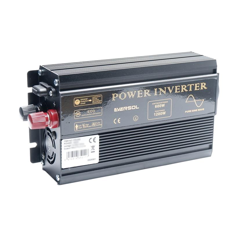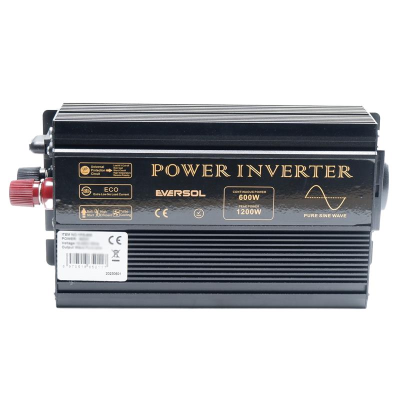 El convertidor EVERSOL 600w 12V 220V PUR SINUS proporciona una verdadera potencia de salida de onda sinusoidal pura continua de 600W, convierte 12V DC en alimentación doméstica 220V AC de la más alta calidad