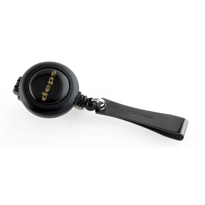 Un carrete para enganchar fácil de instalar y que se puede instalar en cualquier lugar. Puede ser firmemente fijado y la función de rotación a 360 grados reduce la carga sobre el cordón del carrete y hace difícil su ruptura. Además, como está fijado con un clip, puede ser adjunto a chalecos salvavidas que no se pueden enganchar con alfileres de seguridad.
