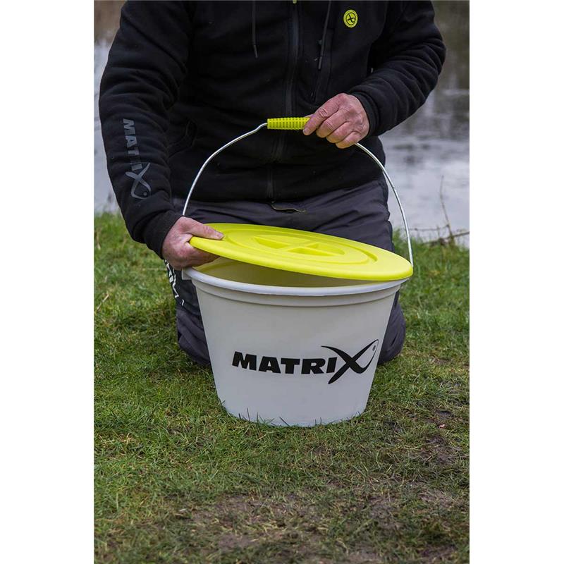 • Capacidad de 17 L, tamaño ideal para las carpodromes • Incluye una tapa moldeada para proteger tus cebos y anzuelos • Plástico duradero para resistir la mezcla de cebo con un taladro • Asa robusta de acero inoxidable con agarre de plástico • Cubo principal de color gris claro para ayudar a mantenerse fresco bajo el sol • Diseñado para contener tazones Matrix moulded bowls en matriz de 7,5 L y 5,0 L (disponibles por separado)