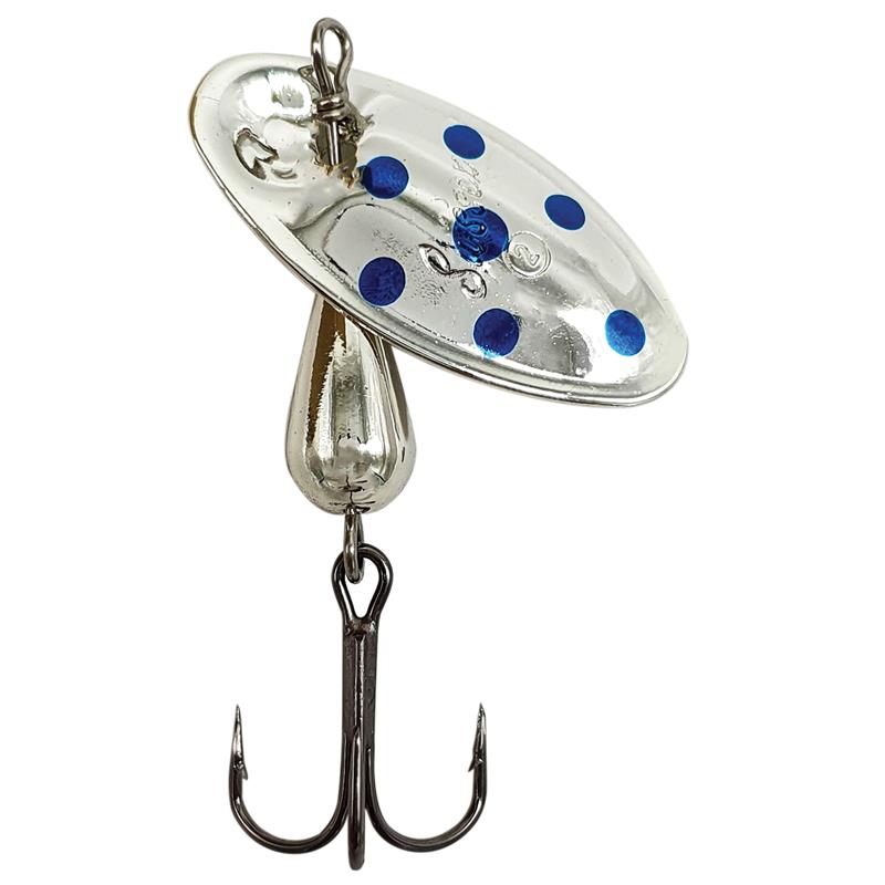 Elige la eficacia y la elegancia con la cucharilla giratoria Suissex Cicada Plata Puntos Azules. Diseñada para atraer la atención de los peces, su acabado plateado con puntos azules proporciona destellos luminosos cautivadores bajo el agua, imitando los reflejos de la luz para aumentar tus posibilidades de éxito. Este señuelo polivalente es ideal para la pesca de depredadores en agua dulce.