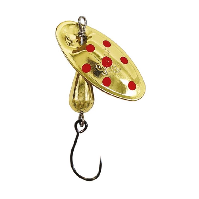 Descubre la cucharilla giratoria Suissex Cicada NK en su versión oro brillante adornada con puntos rojos que sabrá atraer la atención de los peces más desconfiados. Fabricada por la famosa marca Suissex, sinónimo de calidad y eficacia, esta cucharilla es un elemento indispensable en la caja de pesca.