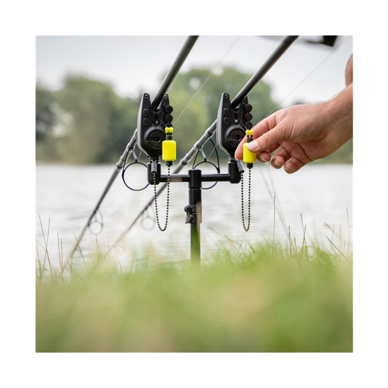 • las características del detector: botones controlan el encendido y los ajustes led, con tres ruedas de ajuste para afinar el volumen, el tono y la sensibilidad. el diseño con insertos de goma compatibles con las cañas permite asegurar y estabilizar en todas las condiciones. una junta rígida de 3/8" sin torsión con un collarín de bloqueo moleteado y una junta de goma asegura un montaje firme y antirrotación.