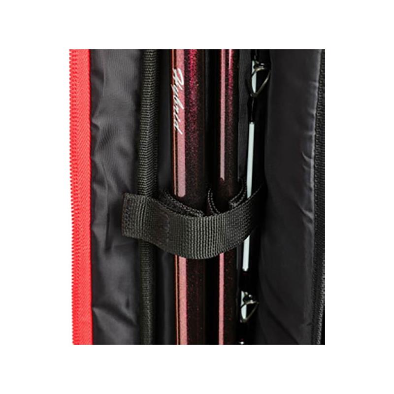 Una funda de alta gama con un diseño moderno. Está compuesta por dos compartimentos, uno pensado para las cañas y el otro más específicamente para los piquetes. Un sistema de solapas asegura la separación de los elementos de la caña y evita que se froten entre sí. Varias asas la hacen fácil de usar. Su correa de transporte está acolchada, asegurando protección del hombro durante las caminatas más largas por las playas. Las cremalleras de plástico sobredimensionadas evitan que la sal deteriore el sistema de cierre. Los tejidos de alta gama son impermeables.