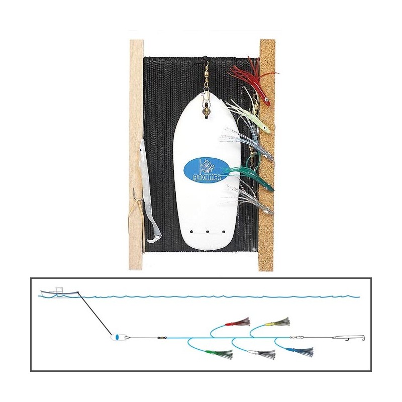 La línea de curricán CAPITÁN se consagra a la pesca de lubina y Lugar. Todas las líneas FLASHMER con tablillas, están garantizadas de una natación y de un equilibrio perfecto. montadas por pescadores confirmados y utilizando los mejores nudos, incluido el nudo en triángulo para conectar la línea y centrarlo perfectamente detrás de la tablilla. las longitudes de cada línea se respetan en función del tamaño de la tablilla y el número y peso de los señuelos.