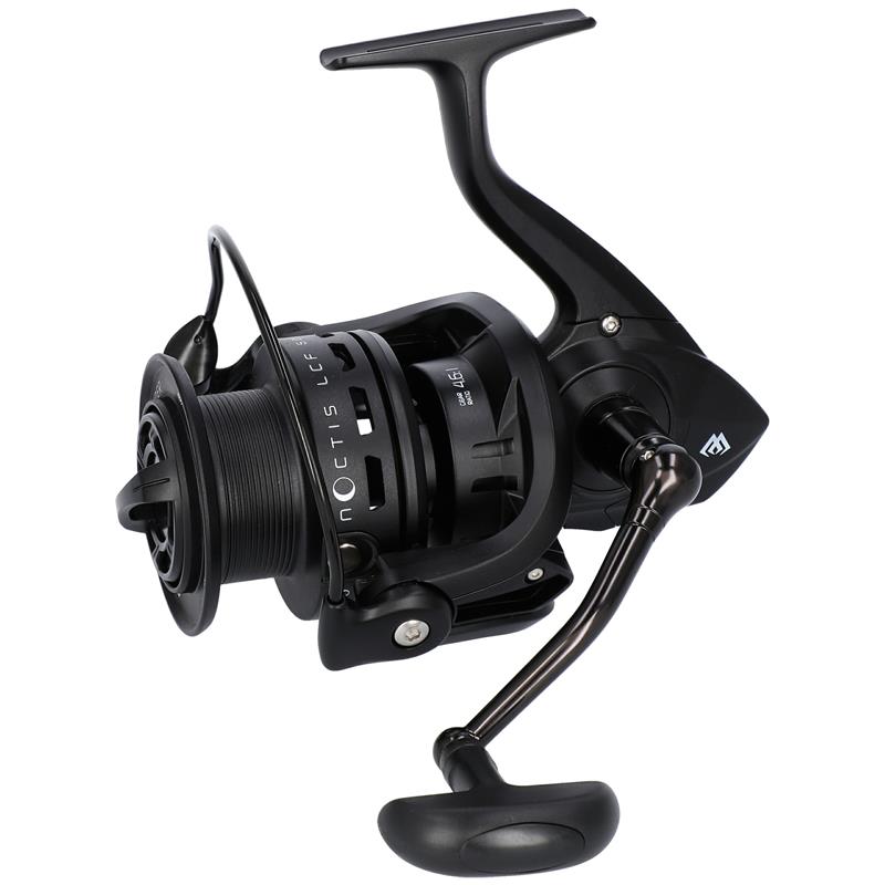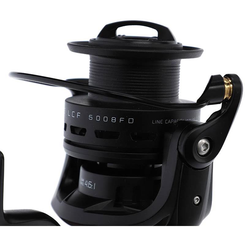 molinete feeder profesional equipado con una amplia bobina, un engranaje robusto y un freno preciso. diseñado para la pesca a larga distancia y en estanques comerciales poblados de peces grandes.