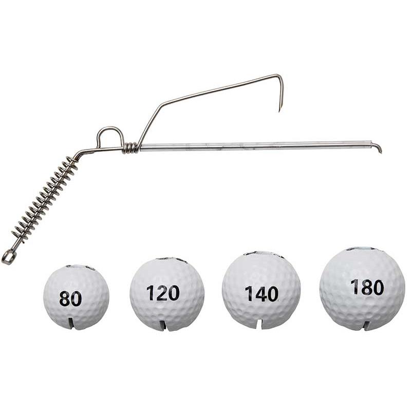 Una montura única con un sistema de cabeza intercambiable para pescar con pez muerto manejado. Está equipada con un revestimiento alveolar para reducir la presión del plomada en el agua. La gran ventaja reside en la rapidez de ejecución para cambiar la cabeza y así modificar el peso. La elección de tu plomada debe hacerse en función del tamaño de tu cebo, de la profundidad del agua y de la corriente. Otro punto esencial es la presentación natural y horizontal de tu cebo en acción de pesca. Una ventaja para concretar al máximo el número de capturas. Además, esto reduce considerablemente el riesgo de enredos con la montura. Dos kits están disponibles: uno de 80 y 120 gramos y otro de 140 y 180 gramos.