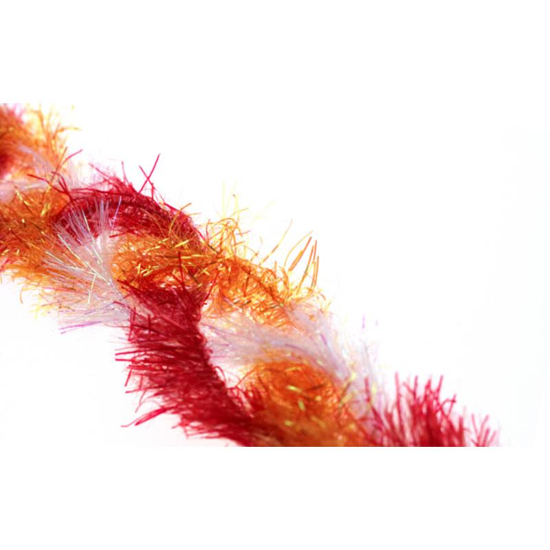 La mayor Cactus Chenille jamás fabricada. Su excepcional anchura de 30 milímetros le permite ser utilizada para todas las moscas que necesitan un cuerpo voluminoso pero ligero. De hecho, la cantidad de fibras de efecto está calibrada para conseguir una cobertura ideal del cuerpo, sin afectar al peso final. En esta versión, algunas fibras básicas son iridiscentes. Es ideal para el montaje de streamers y de las partes centrales de los tubos del cuerpo. • Tarjeta de 3 metros • 30 mm de diámetro